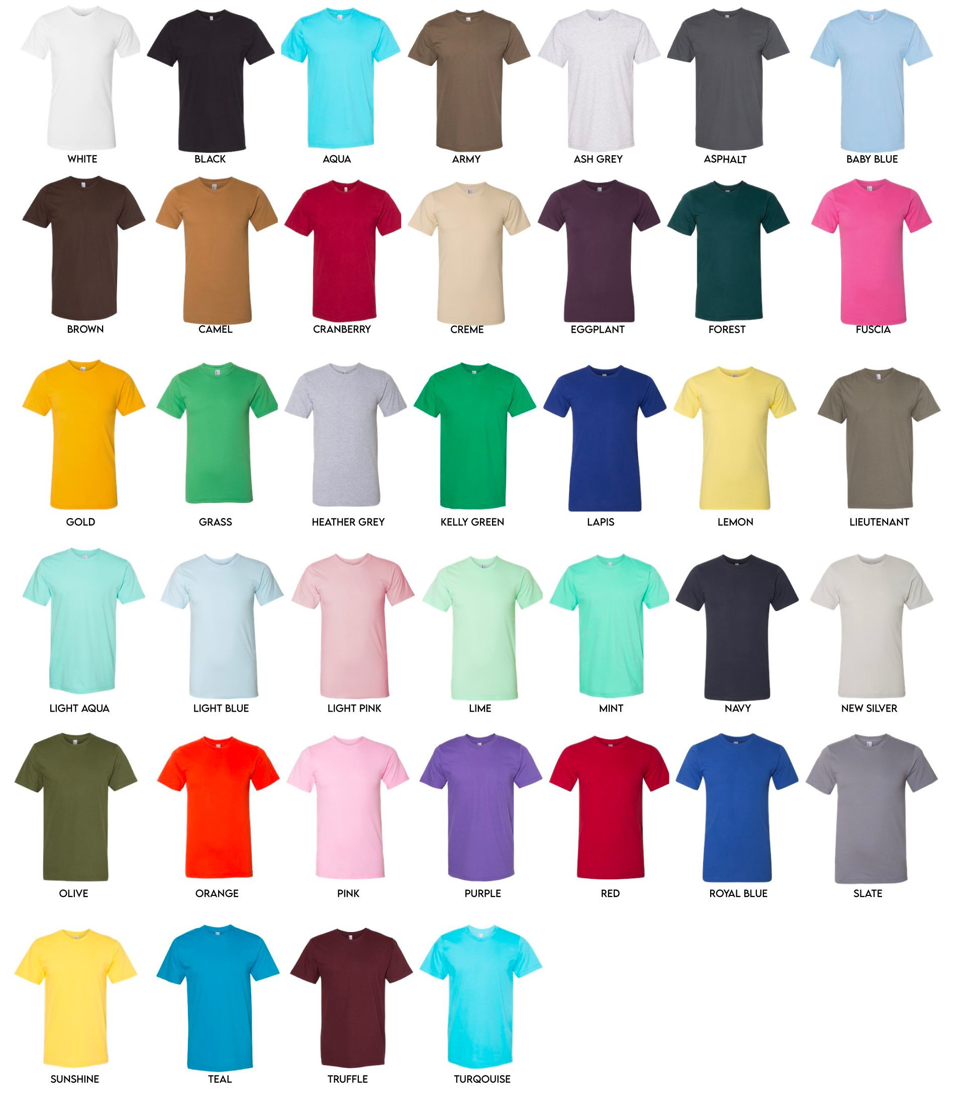 Features: 4.3 oz./yd2, 100% combed ring-spun cotton, shoulder-to-shoulder tape and 7/8” seamed collar, 1” double-needle sleeve and bottom hem, double-satin razor label, tubular